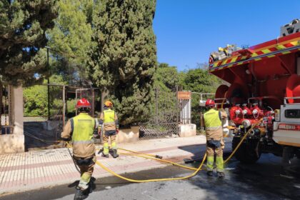 El fuego, originado al parecer en una parcela con vegetación, moviliza a…