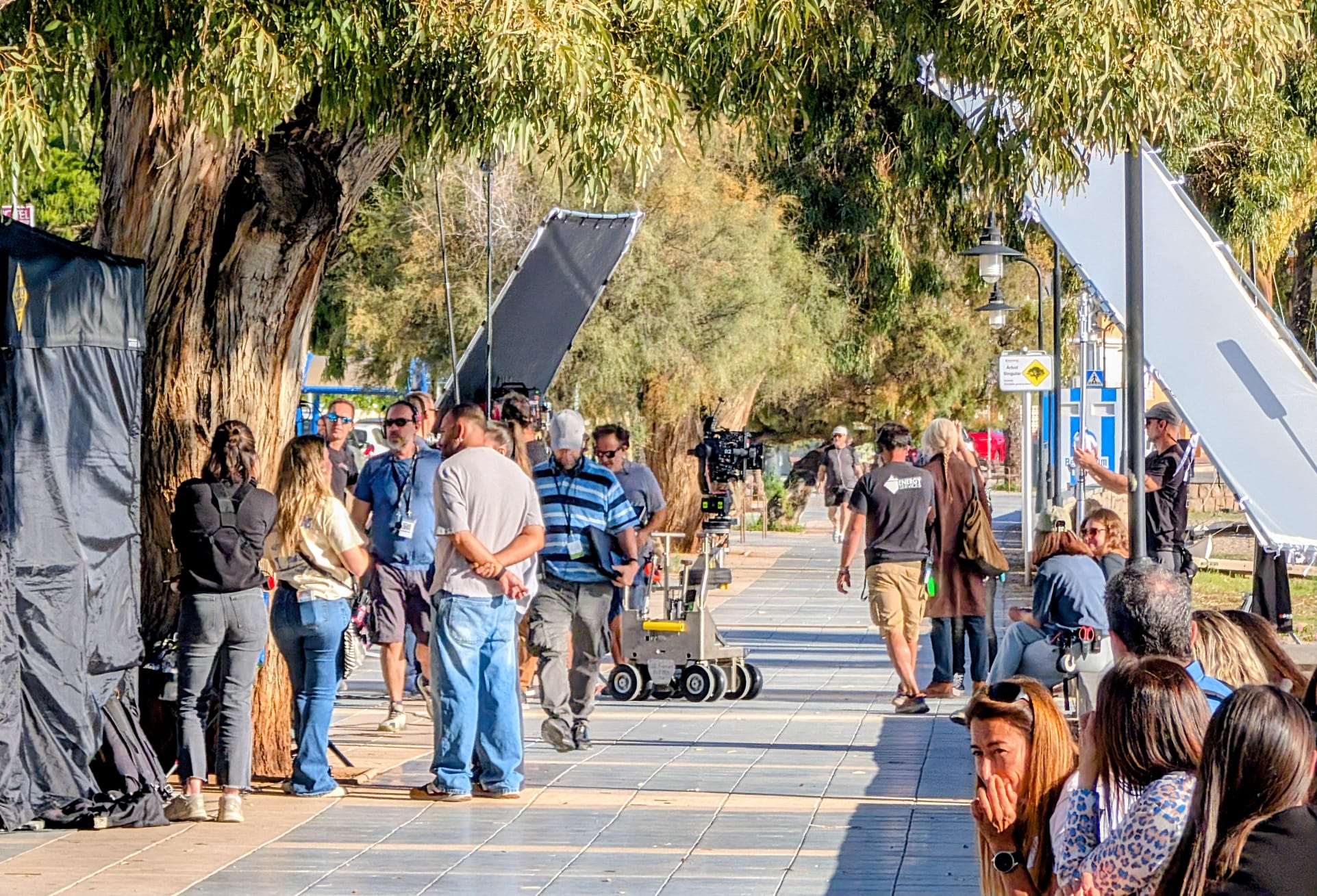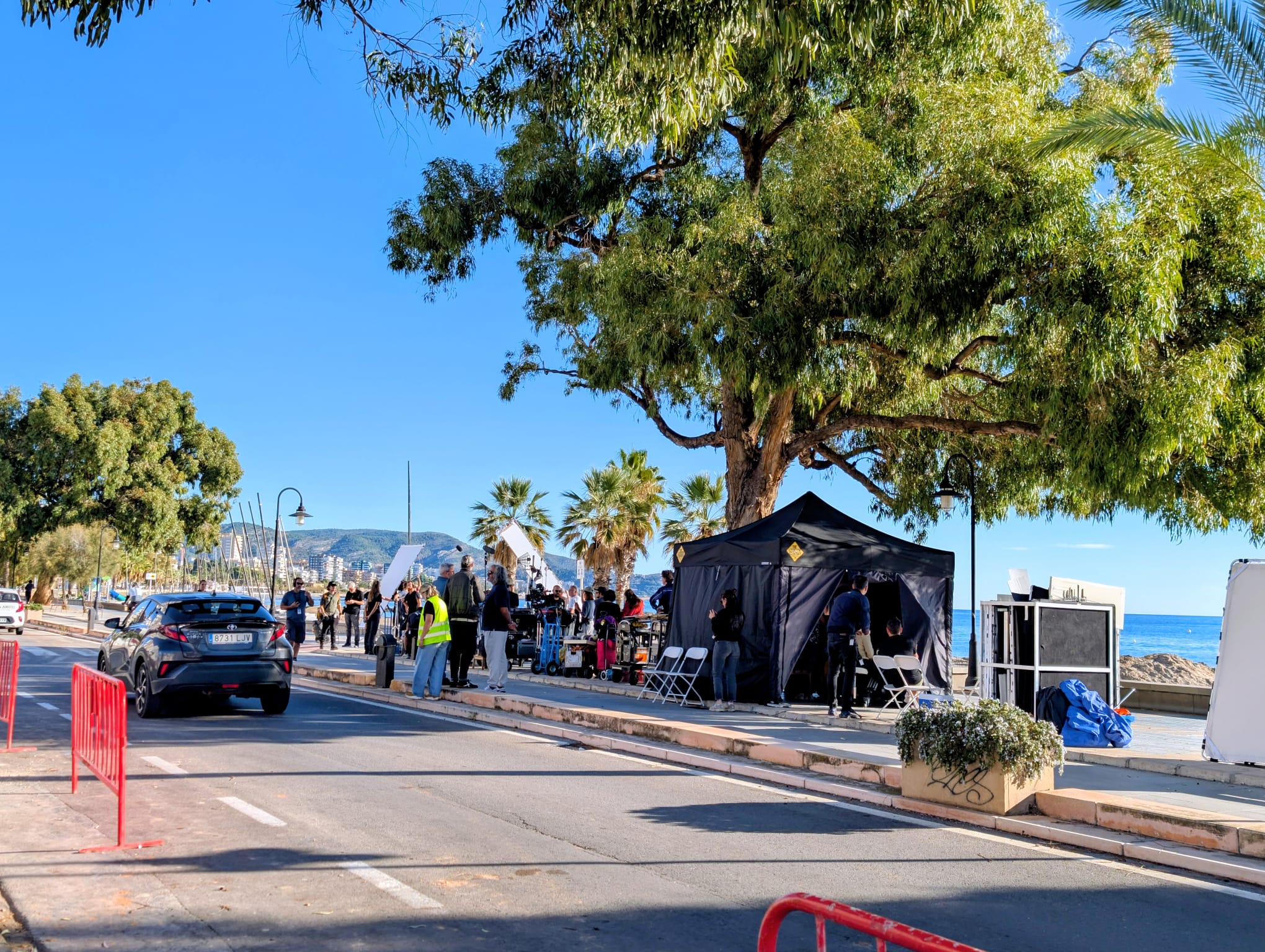 Desde primera hora de la mañana, el equipo ha desplegado un importante operativo en el tramo frente a los apartamentos Hawai, muy cerca del solar donde se construye el nuevo hotel. Bajo un cielo despejado y con temperaturas suaves, los paisajes mediterráneos de Benicàssim brillan ante las cámaras, y todo apunta a que tendrán un papel destacado en la serie.