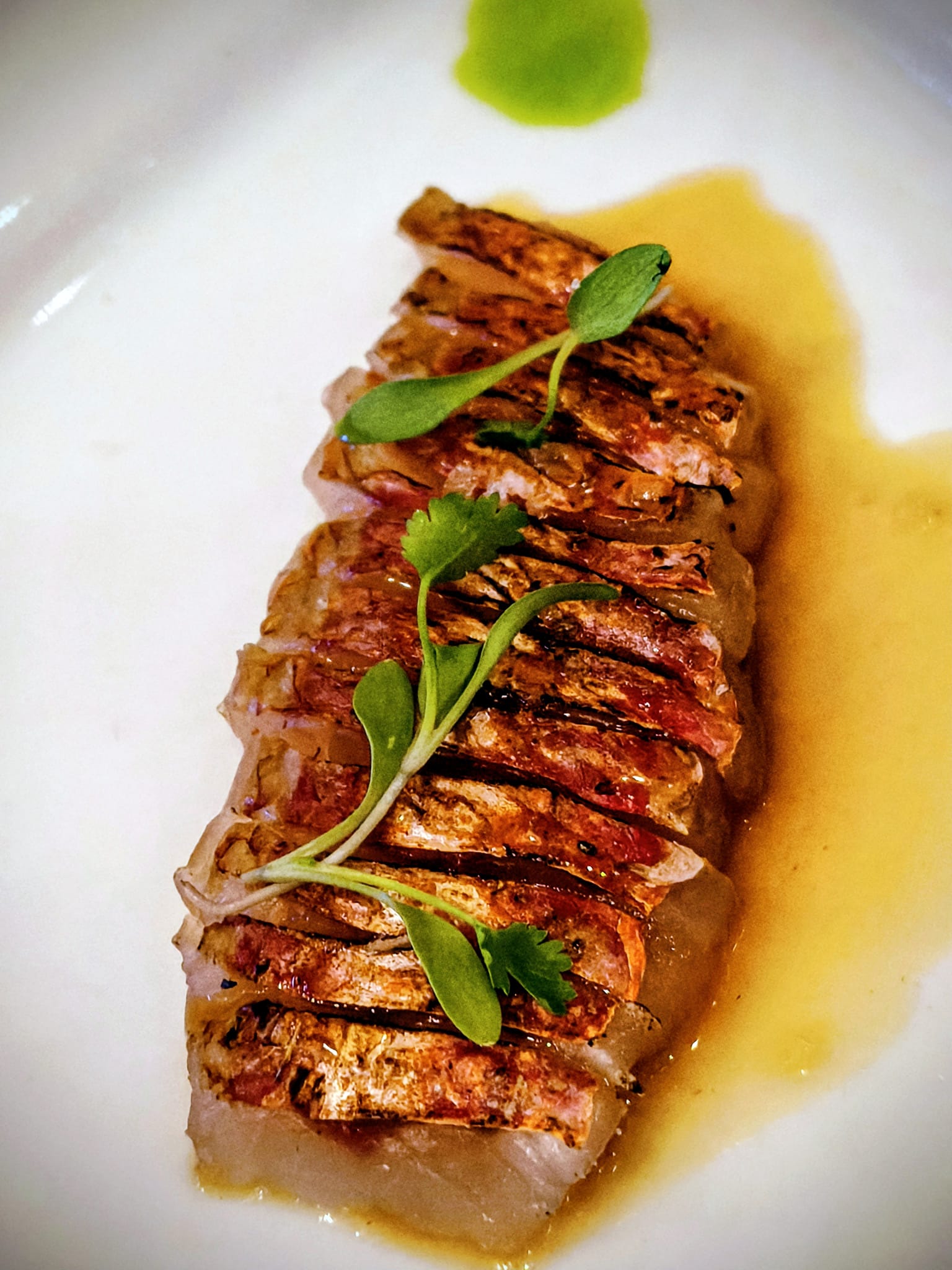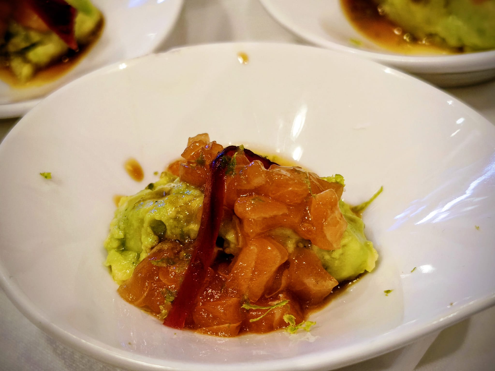 Uno de los pases más interesantes llegó con el tiradito de salmonete con salsa ponzu, donde la precisión en el corte y el tratamiento del producto marcan el carácter de la propuesta.