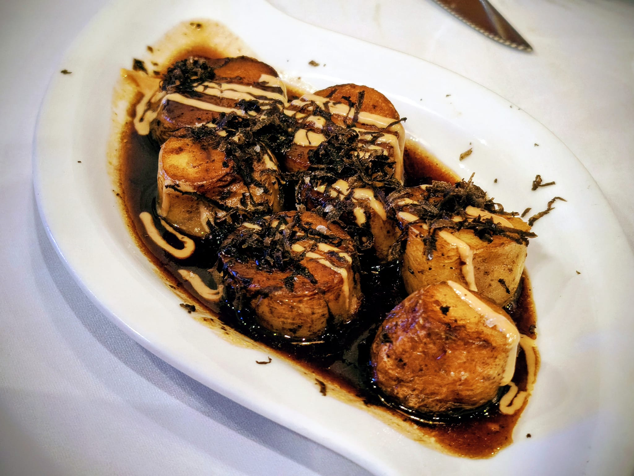 A medida que avanzaba el menú, la cocina empezó a mostrar su verdadera profundidad. Las patatas ratte, con su forma irregular y textura particular, llegaron acompañadas de jugo de carne y trufa, elevando un producto humilde a un nivel inesperado.