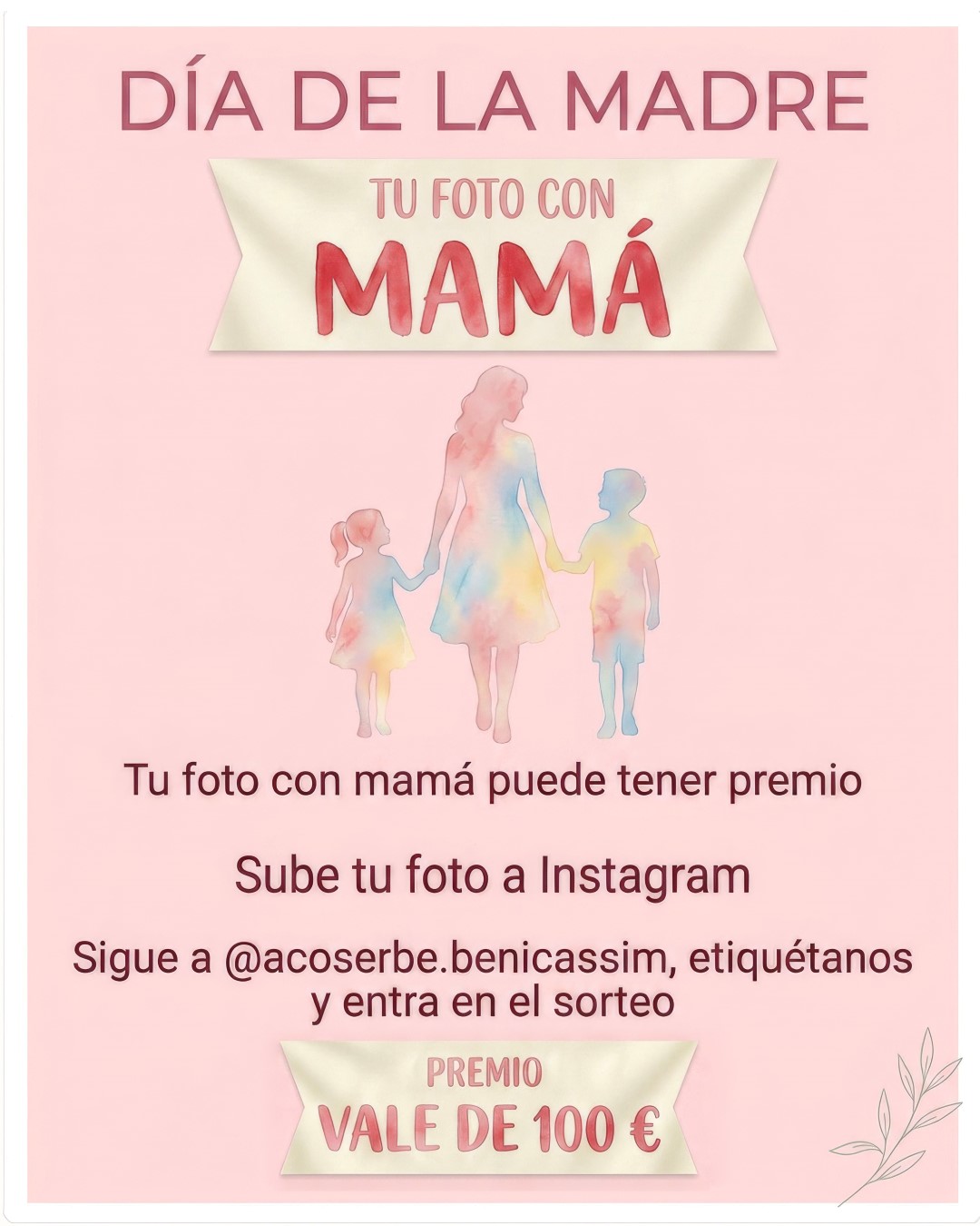 Para entrar en el sorteo, las personas interesadas deberán subir la imagen a sus stories de Instagram, seguir la cuenta @acoserbe.benicassim, etiquetar a la asociación en la publicación y enviar además un mensaje privado con la foto y el texto “Participo en la campaña Día de la Madre”.