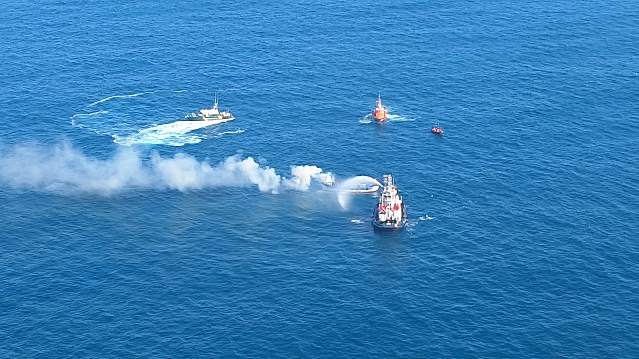 Los equipos de emergencia iniciaron labores para sofocar el fuego, aunque finalmente la embarcación terminó hundiéndose tras el incendio.