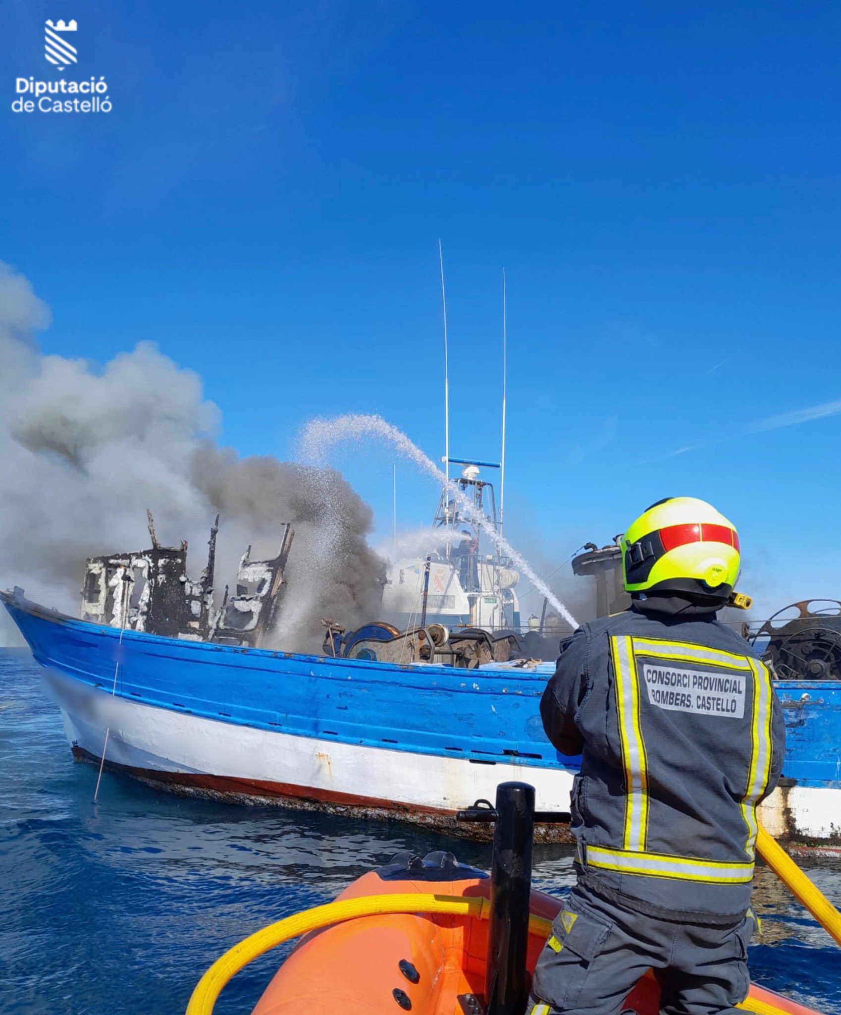 Por su parte, el Consorcio Provincial de Bomberos de Castellón desplazó una embarcación de rescate con dotación de bomberos a bordo, equipada con medios de extinción para actuar sobre el incendio.