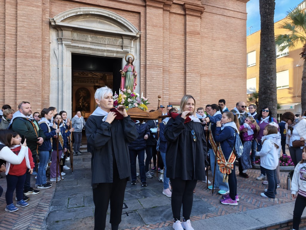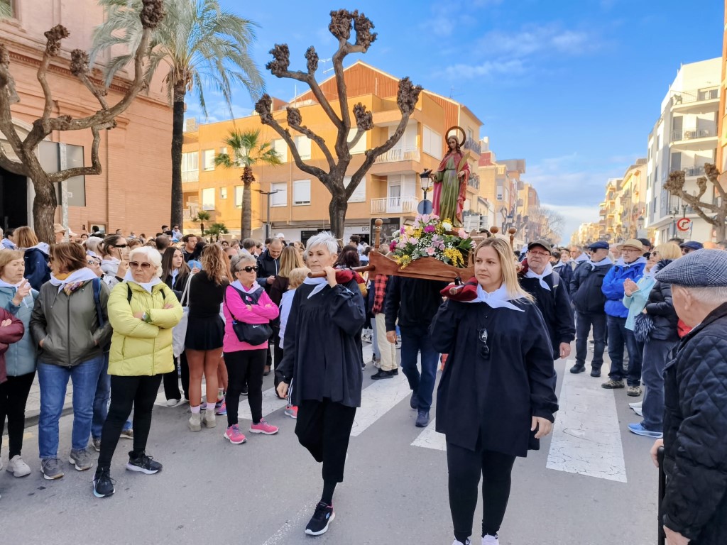 Desde primera hora de la mañana, los romeros se concentraron en el entorno de la iglesia para iniciar el camino tras el repique de campanas y el disparo de la traca. Acompañados por la música de dolçainers y con la imagen de la patrona al frente, vecinos, festeros y autoridades avanzaron juntos en una comitiva marcada por el carácter festivo y popular.